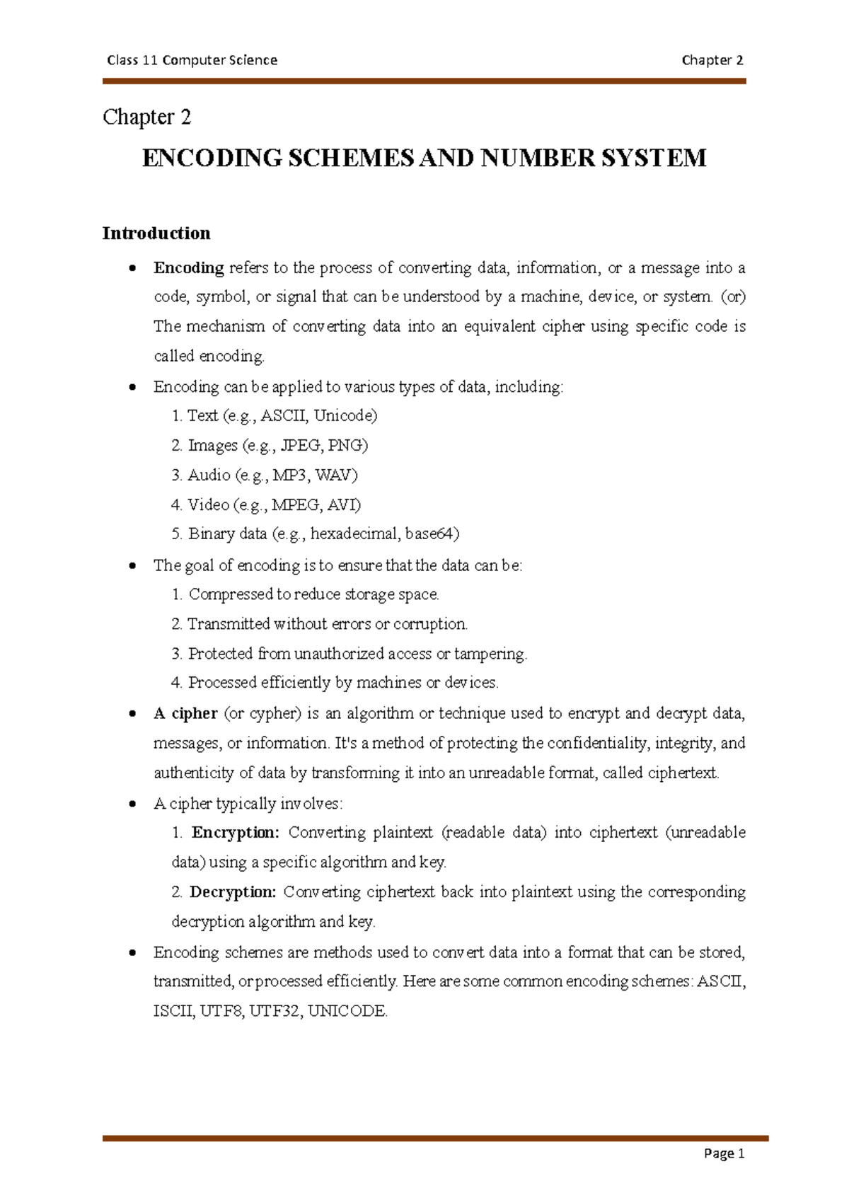 Encoding Schemes and Number Systems Class 11 | PDF | Character Encoding ...