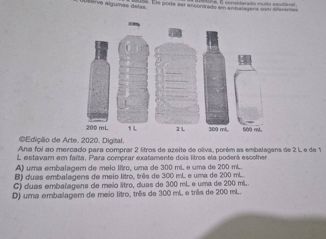 Resolvido:a azeitona. É considerado muito saudável, Ubserve algumas ...