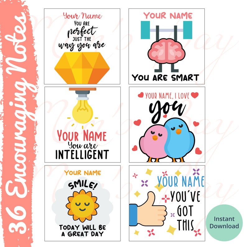 Personalized Printable Gift | Lunch Notes for Kids | Motivational Cards ...