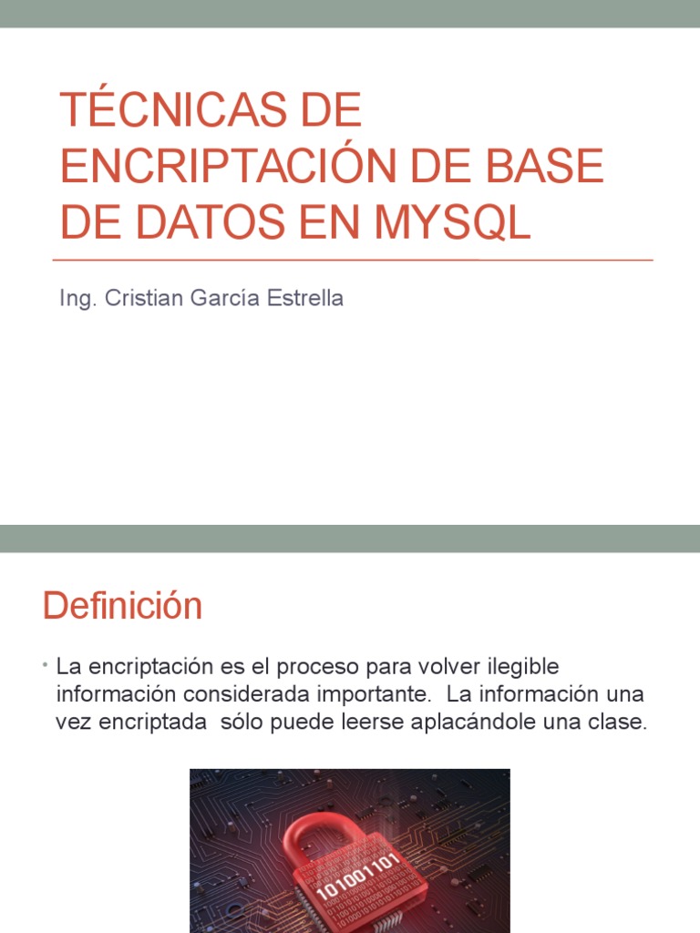Técnicas avanzadas de encriptación de datos en MySQL | PDF | Cifrado ...