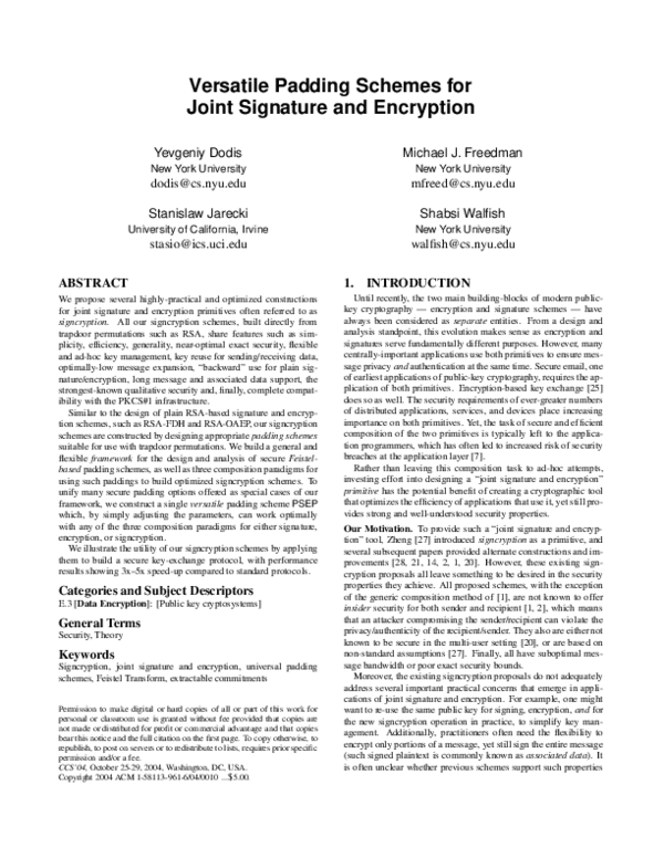 (PDF) Versatile padding schemes for joint signature and encryption