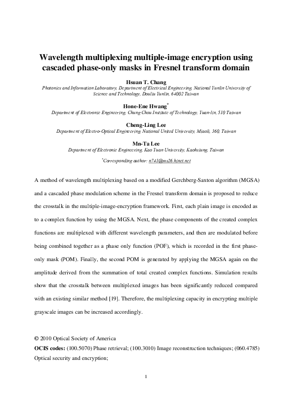 (PDF) Wavelength multiplexing multiple-image encryption using cascaded ...