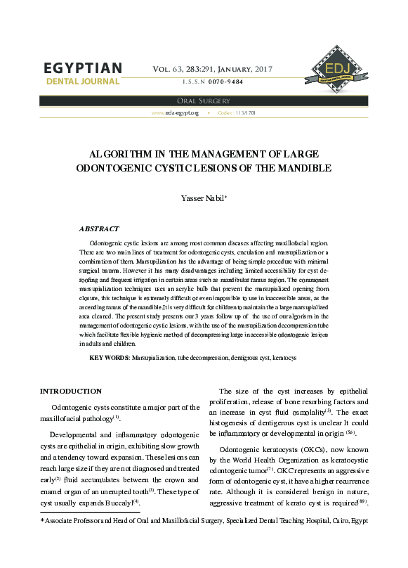 (PDF) Algorithm in the Management of Large Odontogenic Cystic Lesions ...