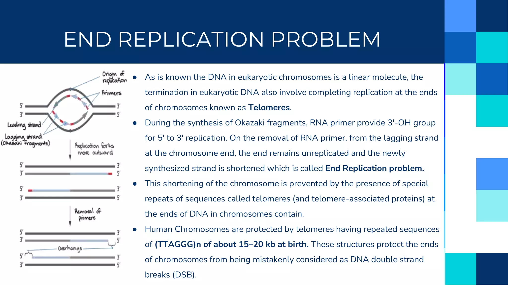 End Replication Problem | Telomere and Aging | enzyme Telomerase ...