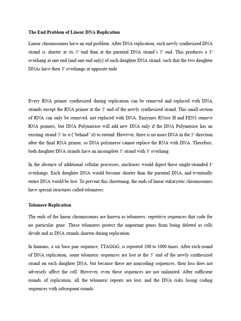 End Problem of Replication | PDF | Telomere | Dna Replication