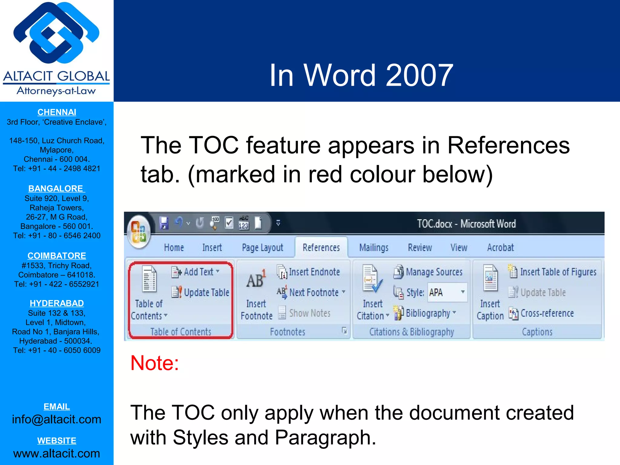Table of contents, footnote & endnote in ms word | PPT