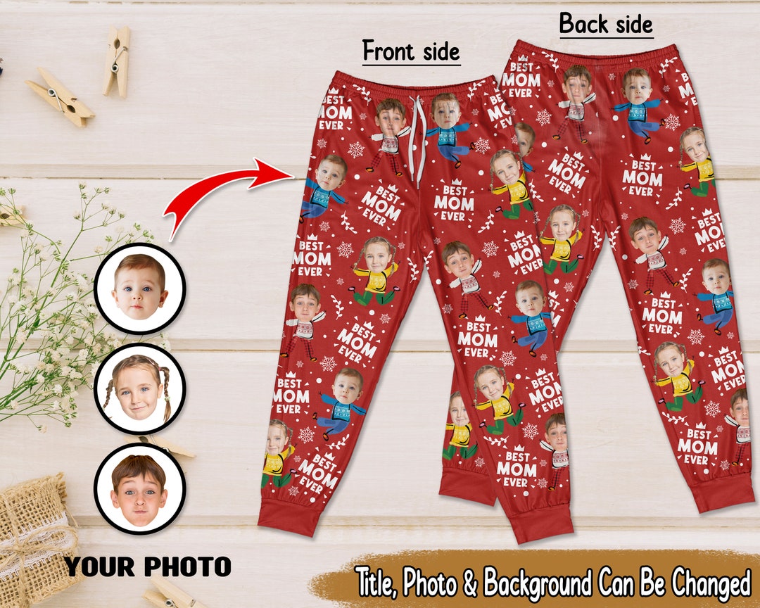 Custom Photo Best Mom Grandma Ever Snow Pattern - Personalized Pajama ...
