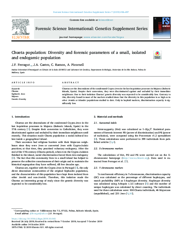 (PDF) Chueta population: Diversity and forensic parameters of a small ...