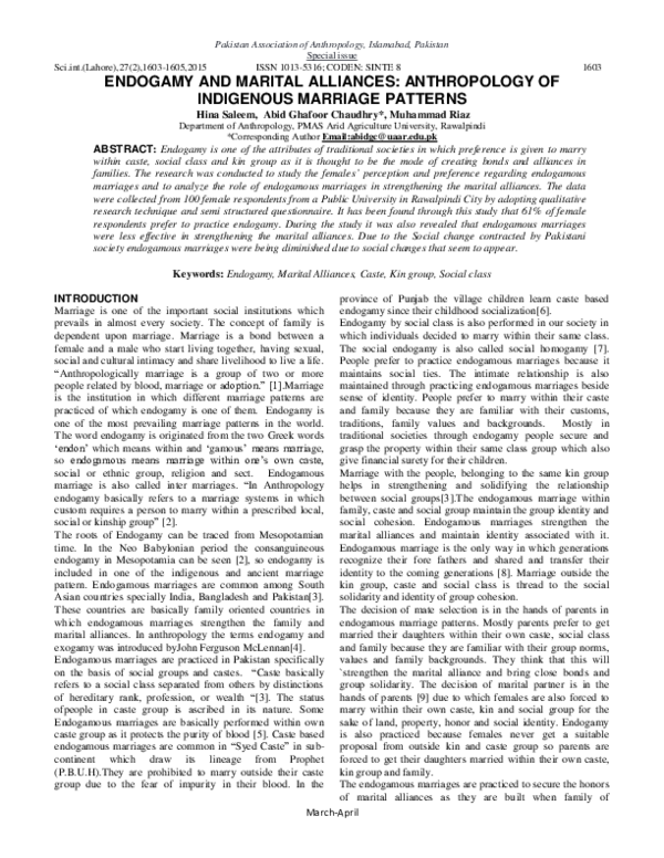 (PDF) ENDOGAMY AND MARITAL ALLIANCES: ANTHROPOLOGY OF INDIGENOUS ...