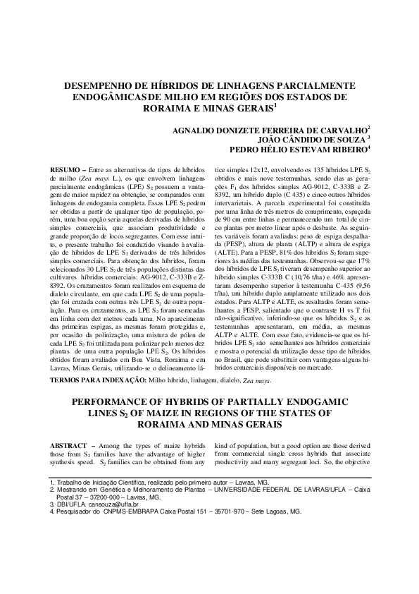 (PDF) Performance of hybrids of partially endogamic lines s2 of maize ...