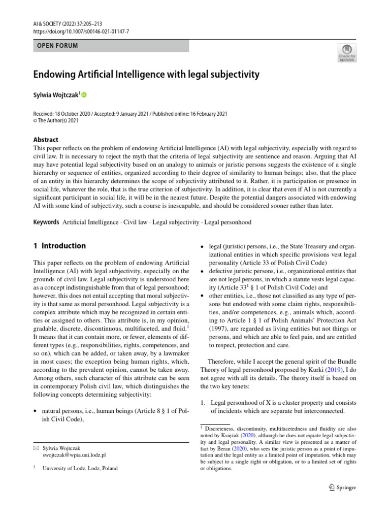 Endowing Artificial Intelligence With Legal Subjectivity | Download ...