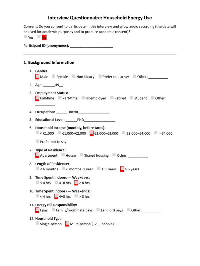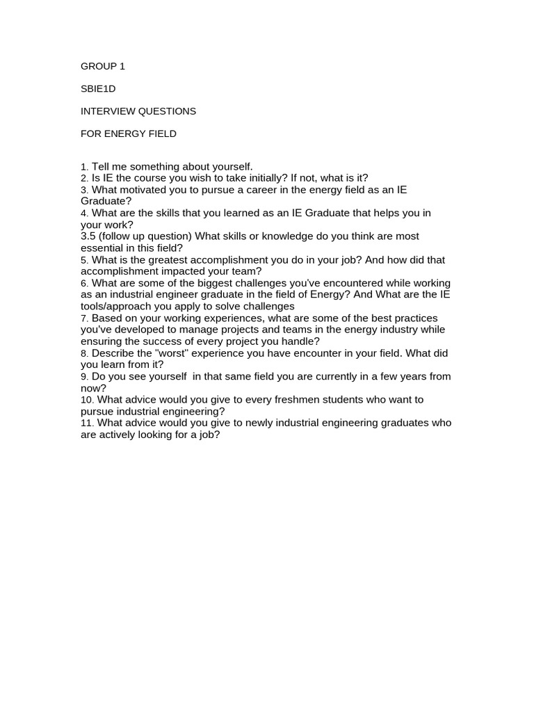 Interview Questionnaire p1 | PDF | Efficient Energy Use | Energy ...