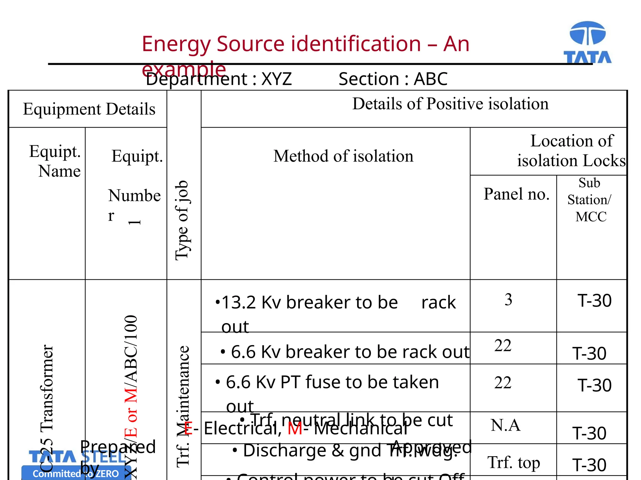 Steps to be followed for effective isolation, de-energization, and ...