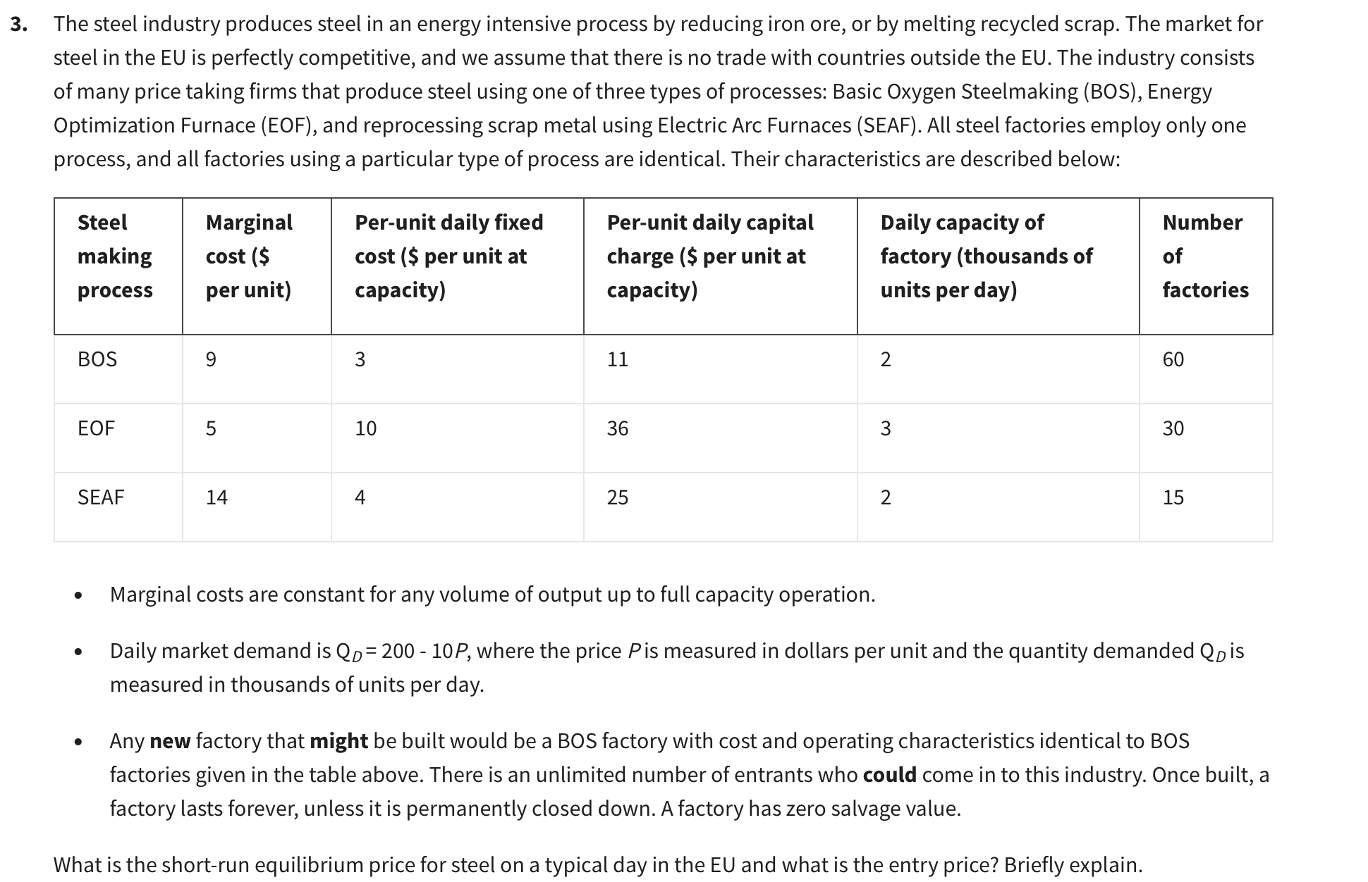 Solved The steel industry produces steel in an energy | Chegg.com