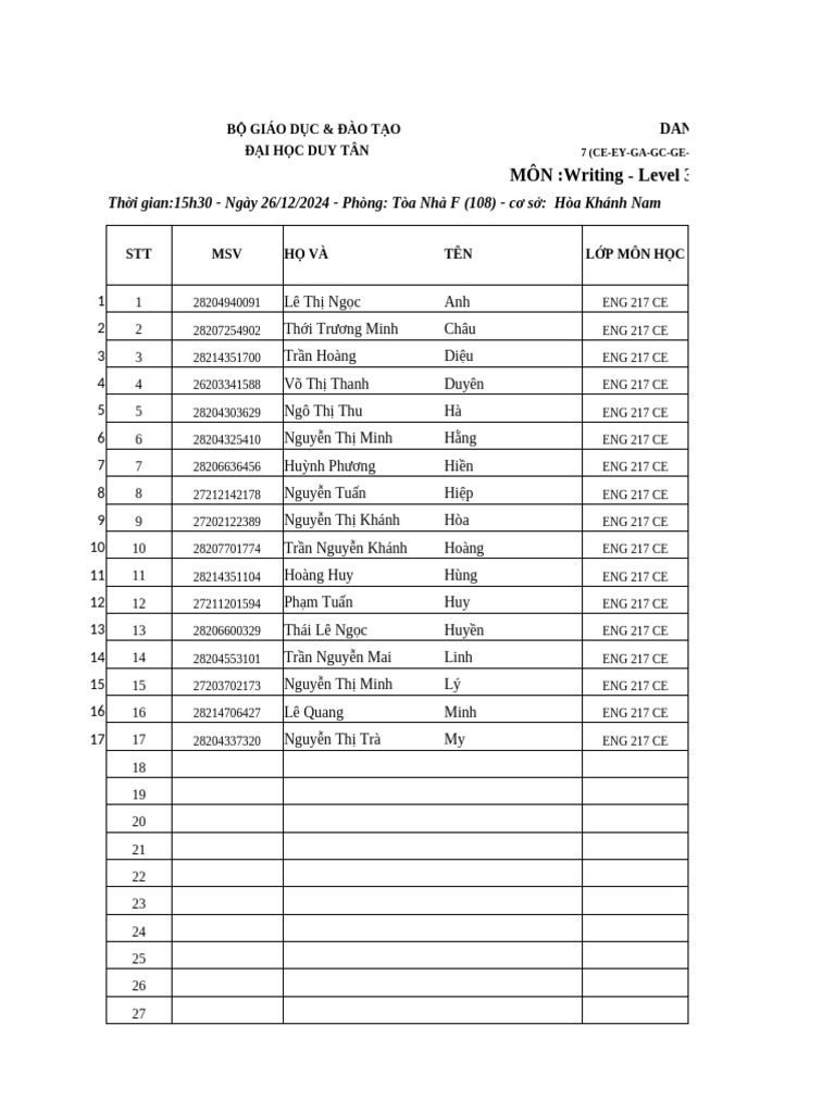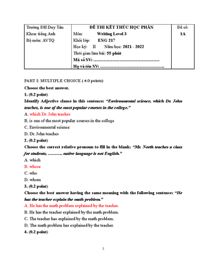 Đề Thi Kết Thúc Học Phần - Writing Level 3 - ENG217SE - Studocu