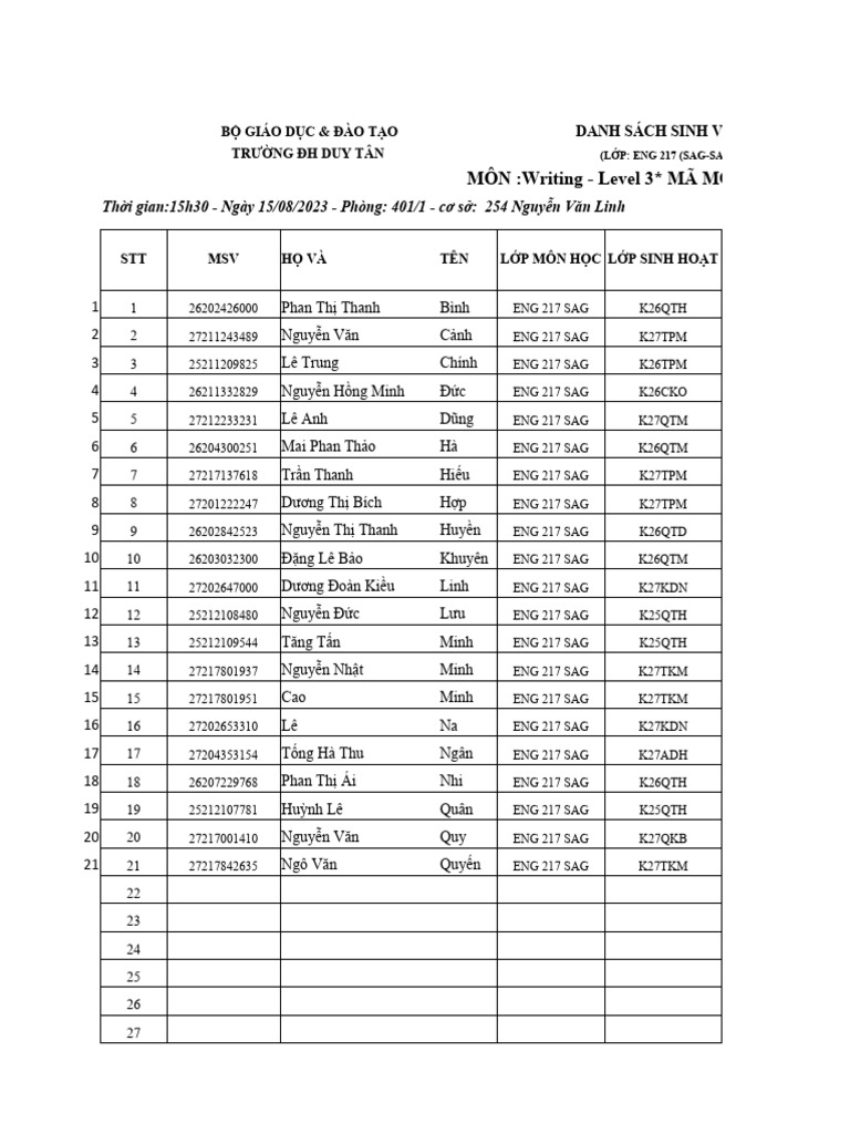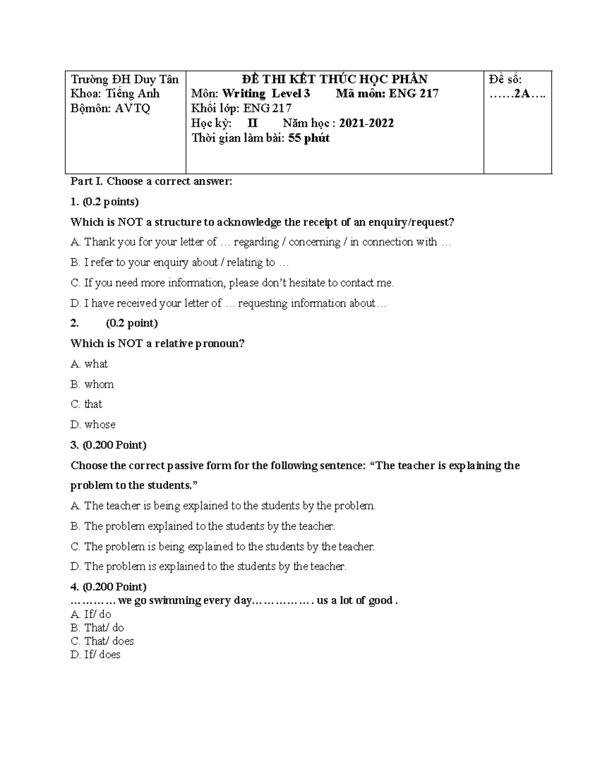Đề thi kết thúc học phần - WRITING LEVEL 3 - ENG 217 - Studocu