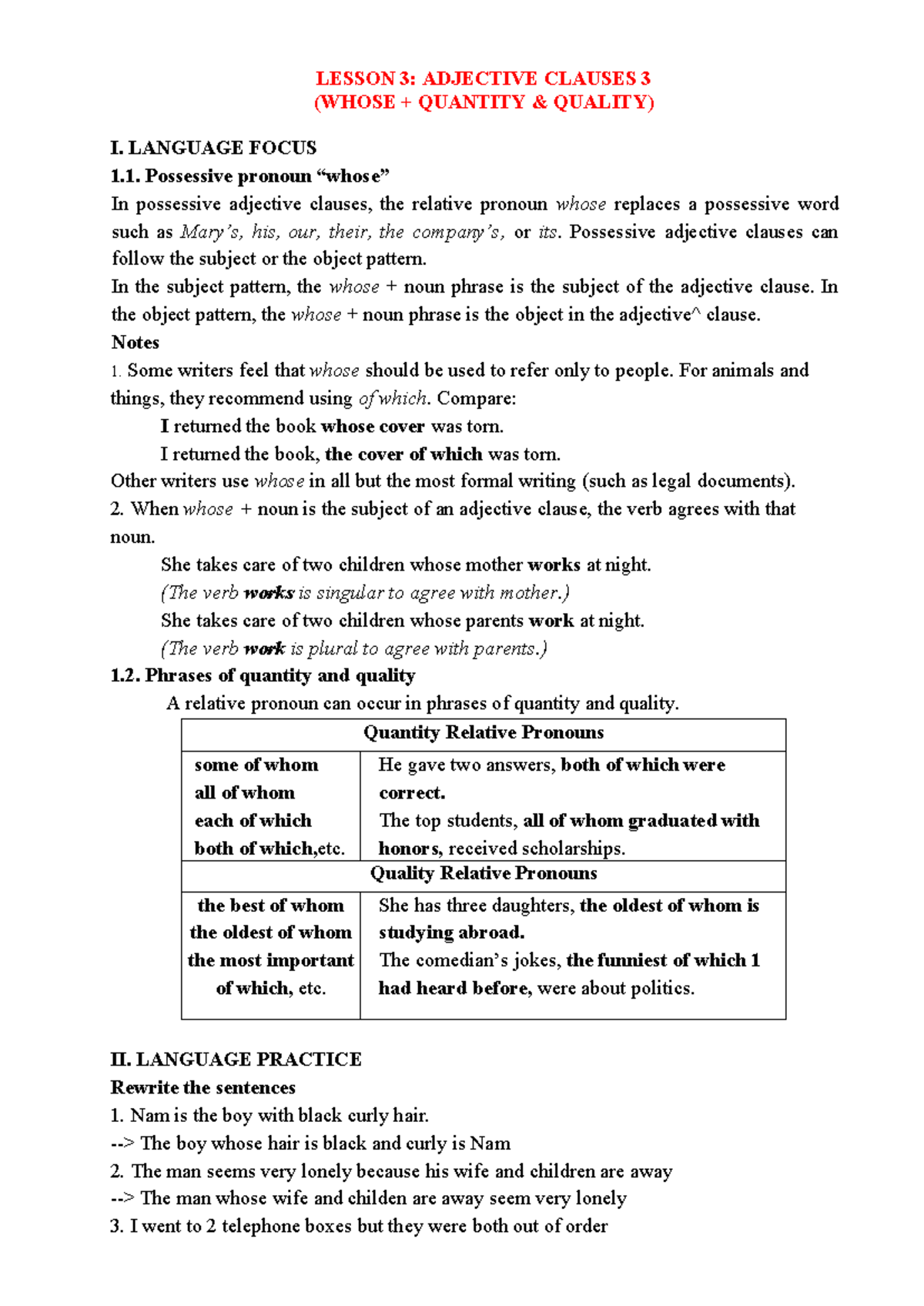 Lesson 3 - ENG217: Adjective Clauses - Key Concepts and Practice - Studocu