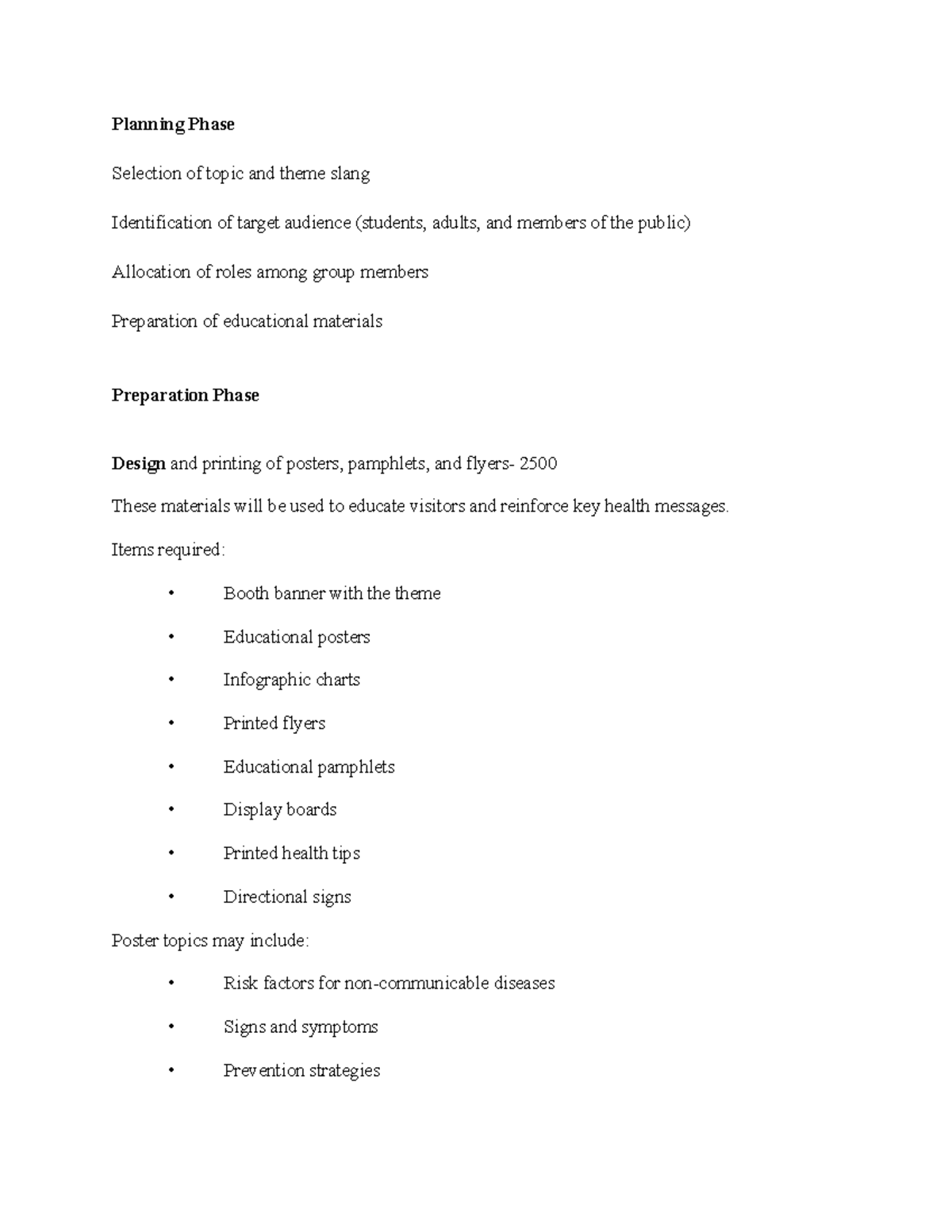 Planning Phase: Topic Selection & Audience Engagement for Health Booth ...