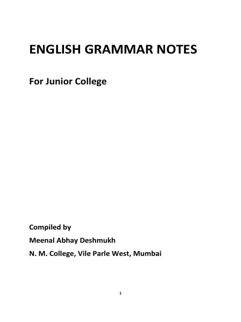 English- Grammar- Notes - ENGLISH GRAMMAR NOTES SIMPLIFIED VERSION OF ...
