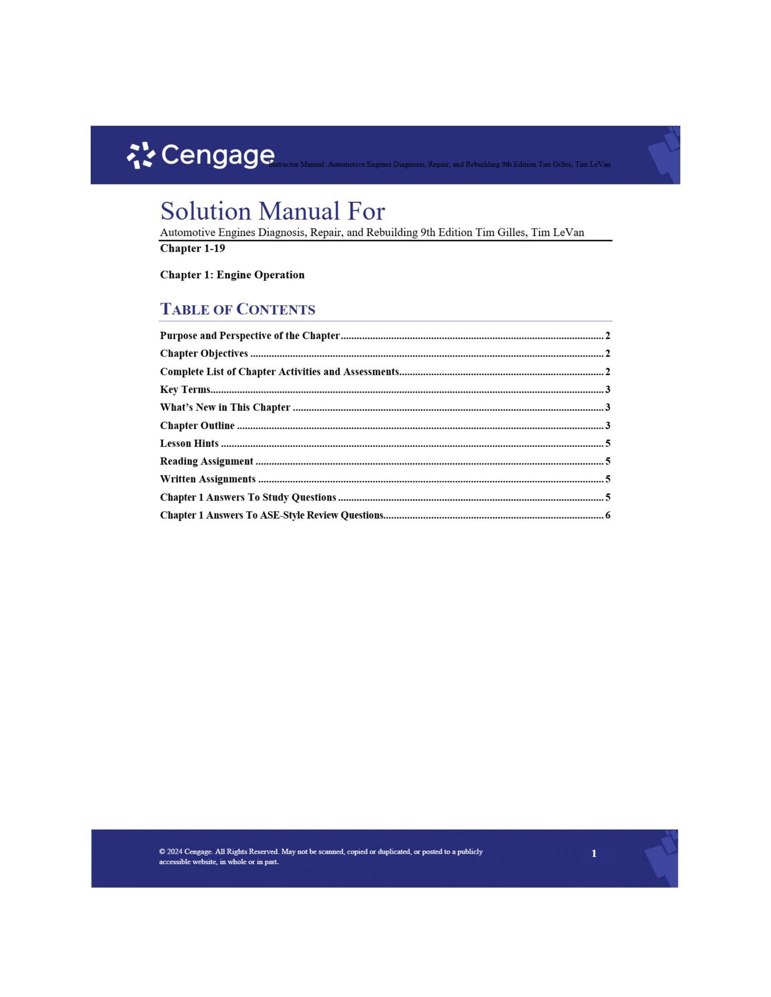 Solution Manual For Automotive Engines Diagnosis, Repair, and ...
