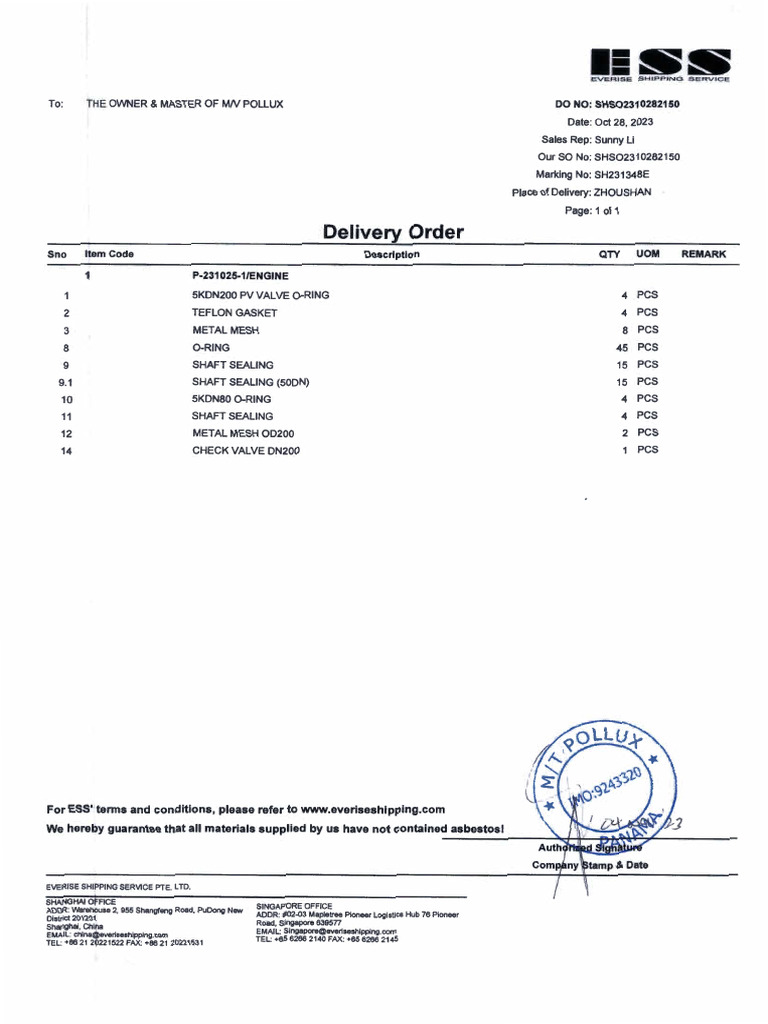 Invoice for Engine Parts and Services | PDF