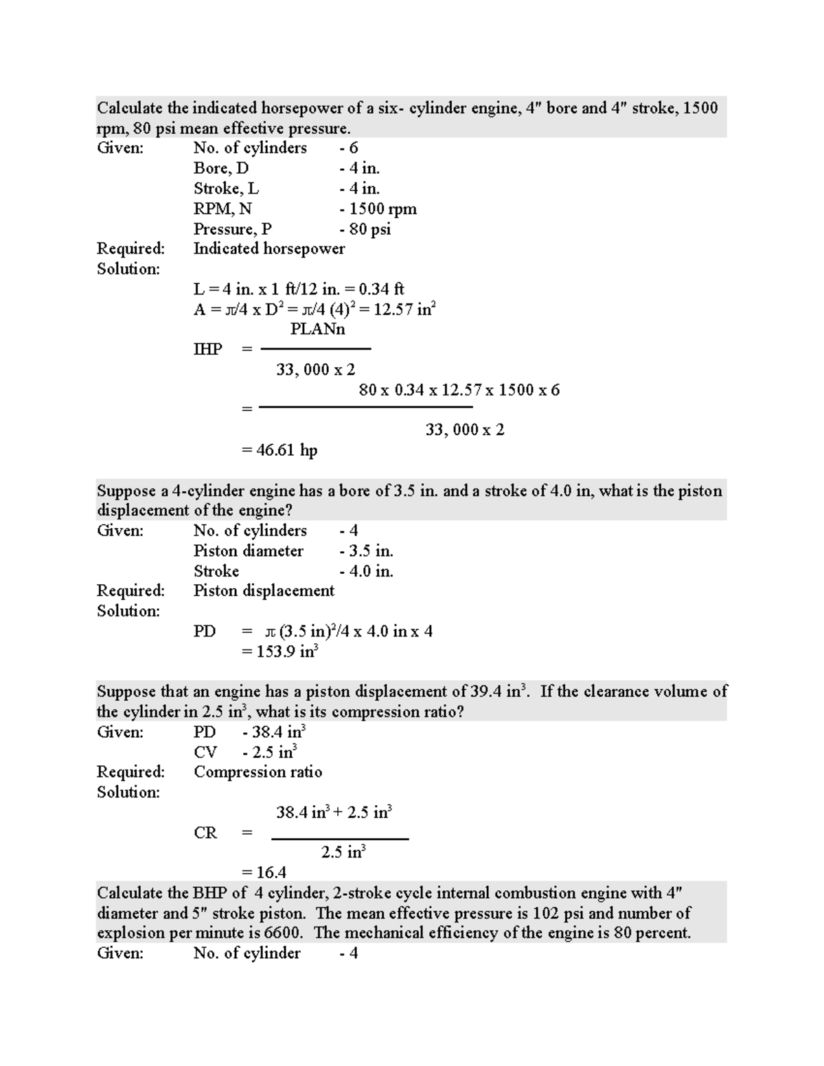 Engine Calculations: Horsepower, Displacement & Compression Ratios ...