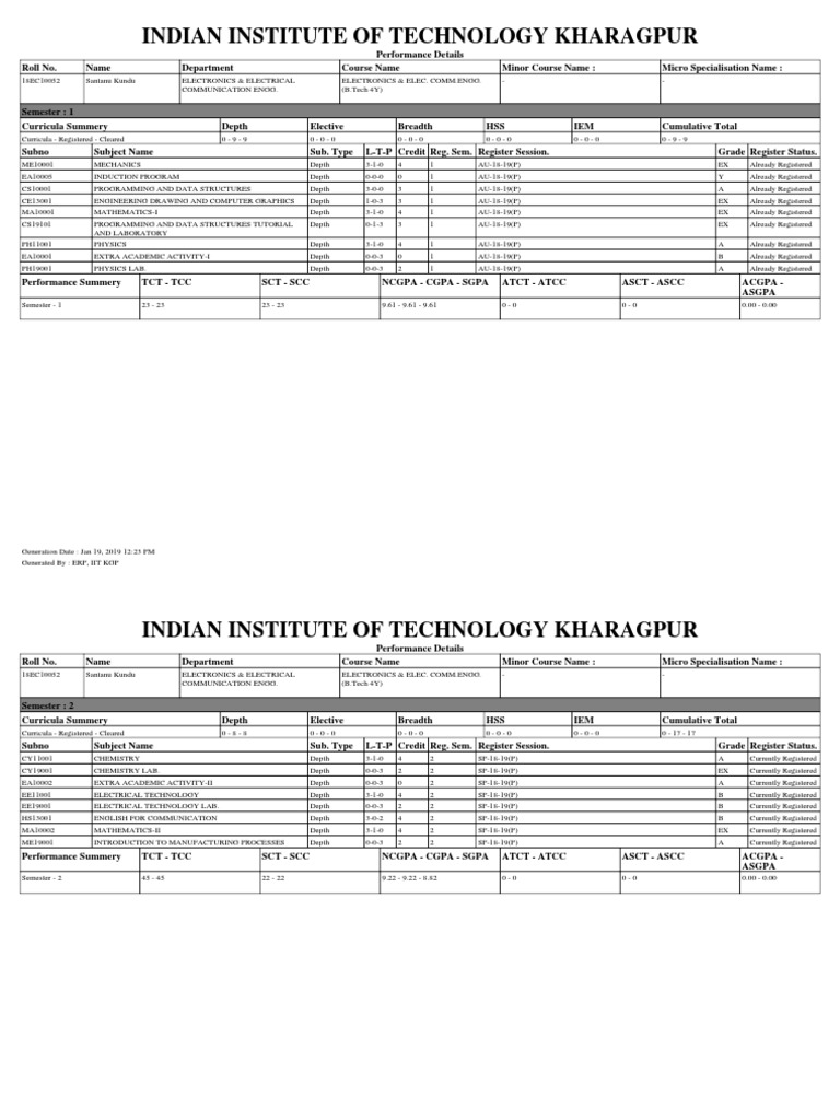 Sem 1 Performance Card | PDF | Career And Technical Education | Engineering