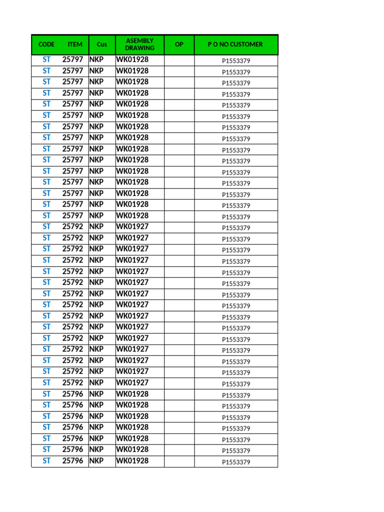 Pre-Marking Code List | PDF | Piston | Cylinder (Engine)