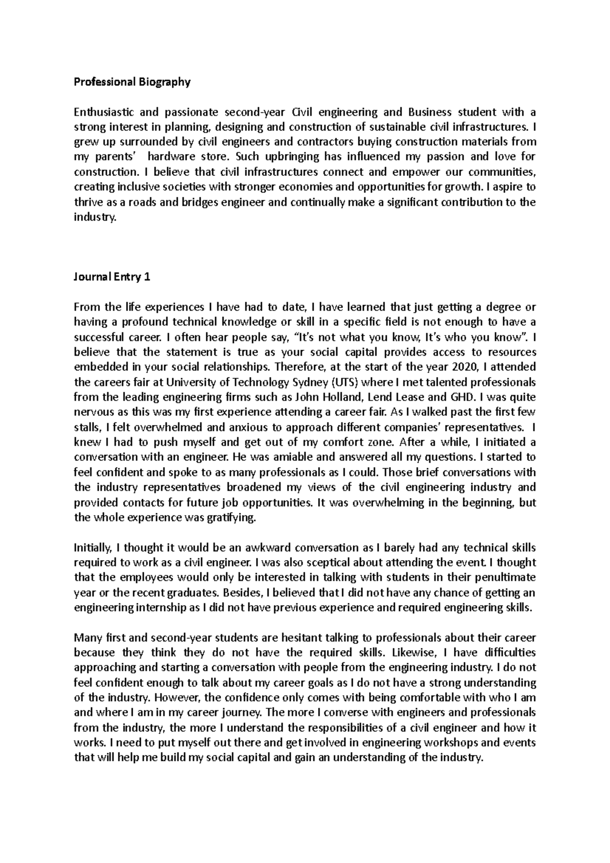 EPP1 Assignment 2 - Professional Biography Enthusiastic and passionate ...
