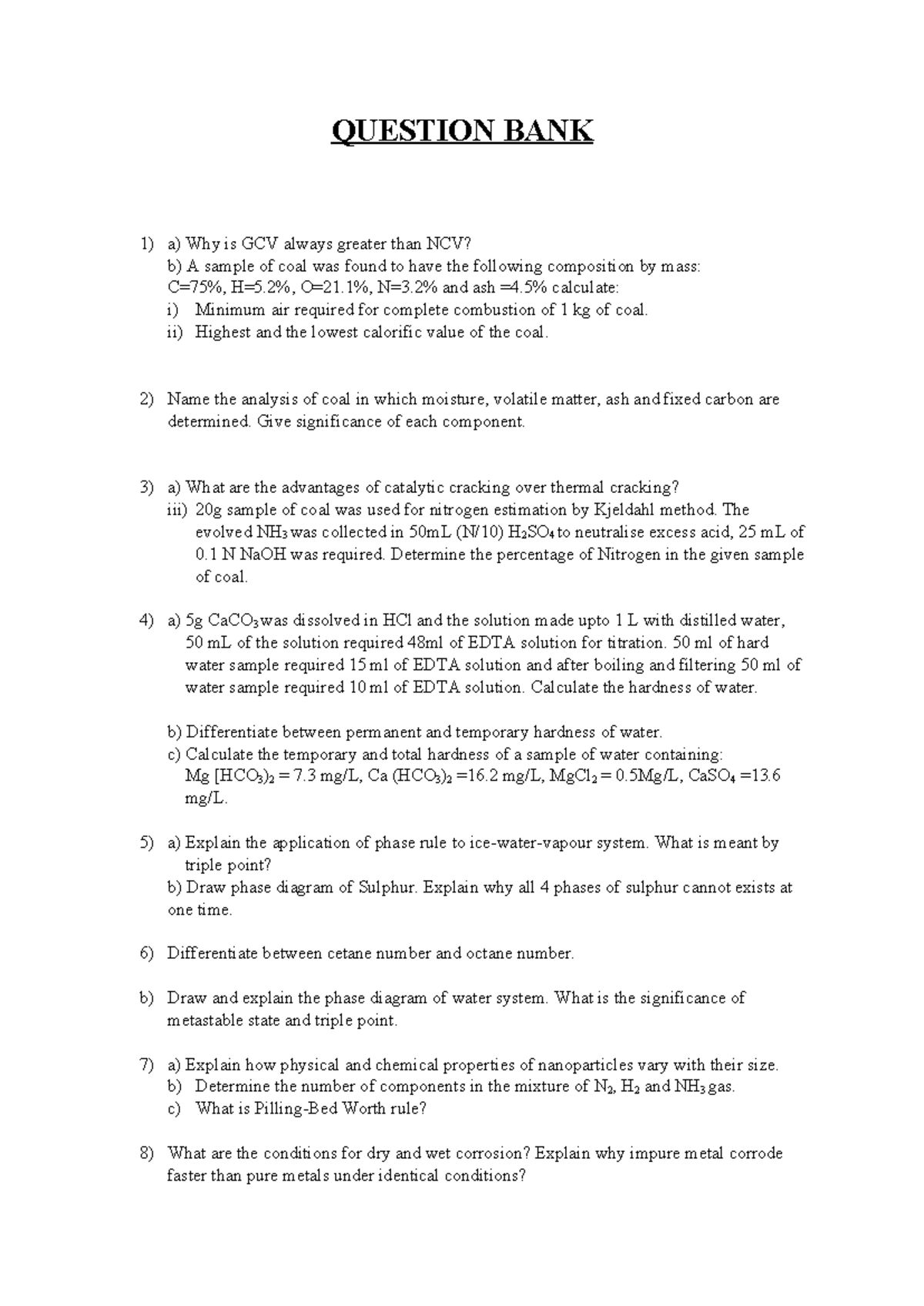 Question Bank for Chemistry Gtbit: Key Concepts and Calculations - Studocu