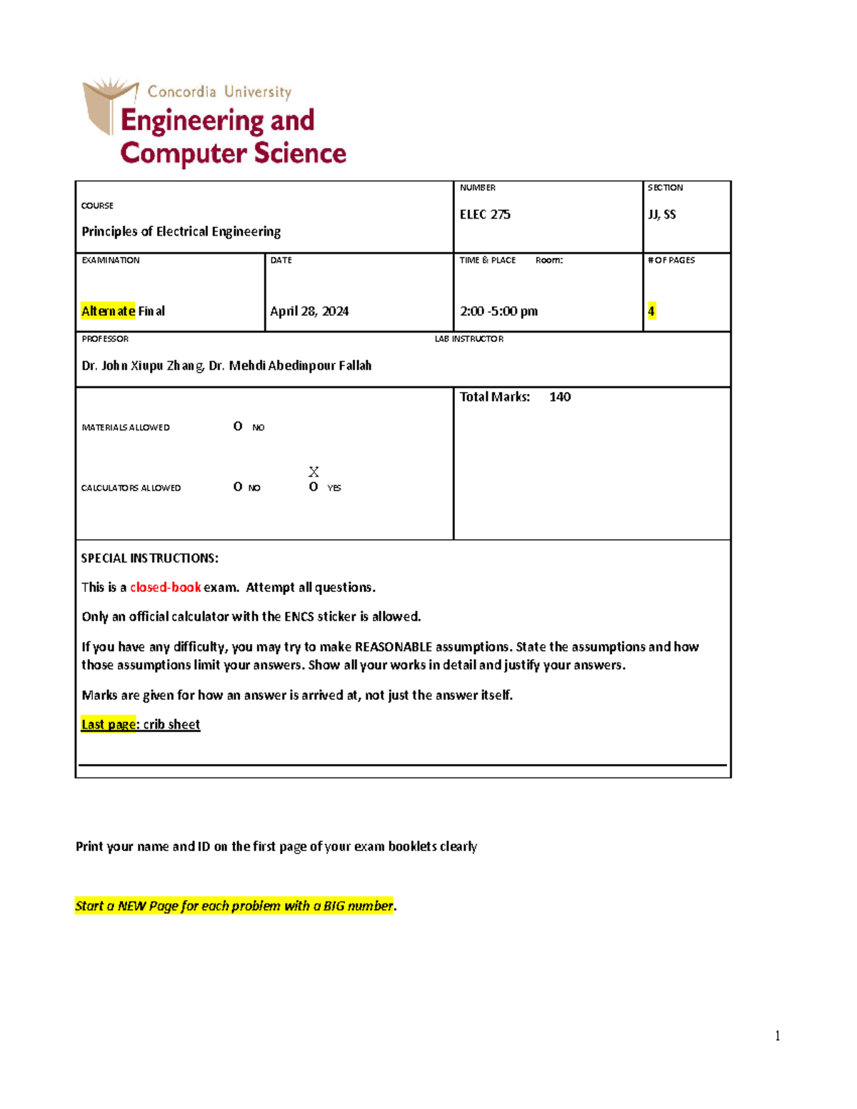 Practice Final Exam for ELEC 275: Principles of Electrical Engineering ...