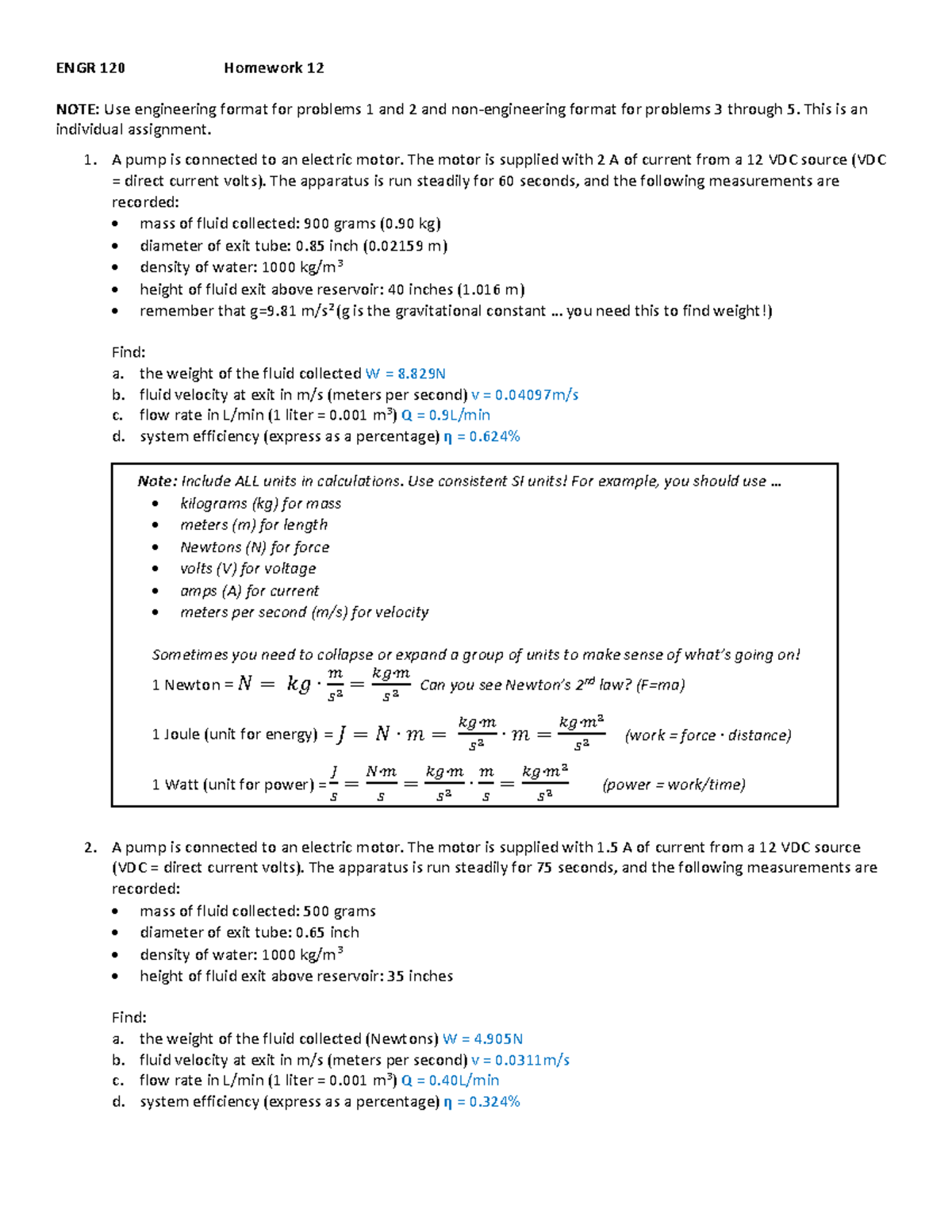ENGR 120 Homework 12: Fluid Dynamics Calculations and Analysis - Studocu