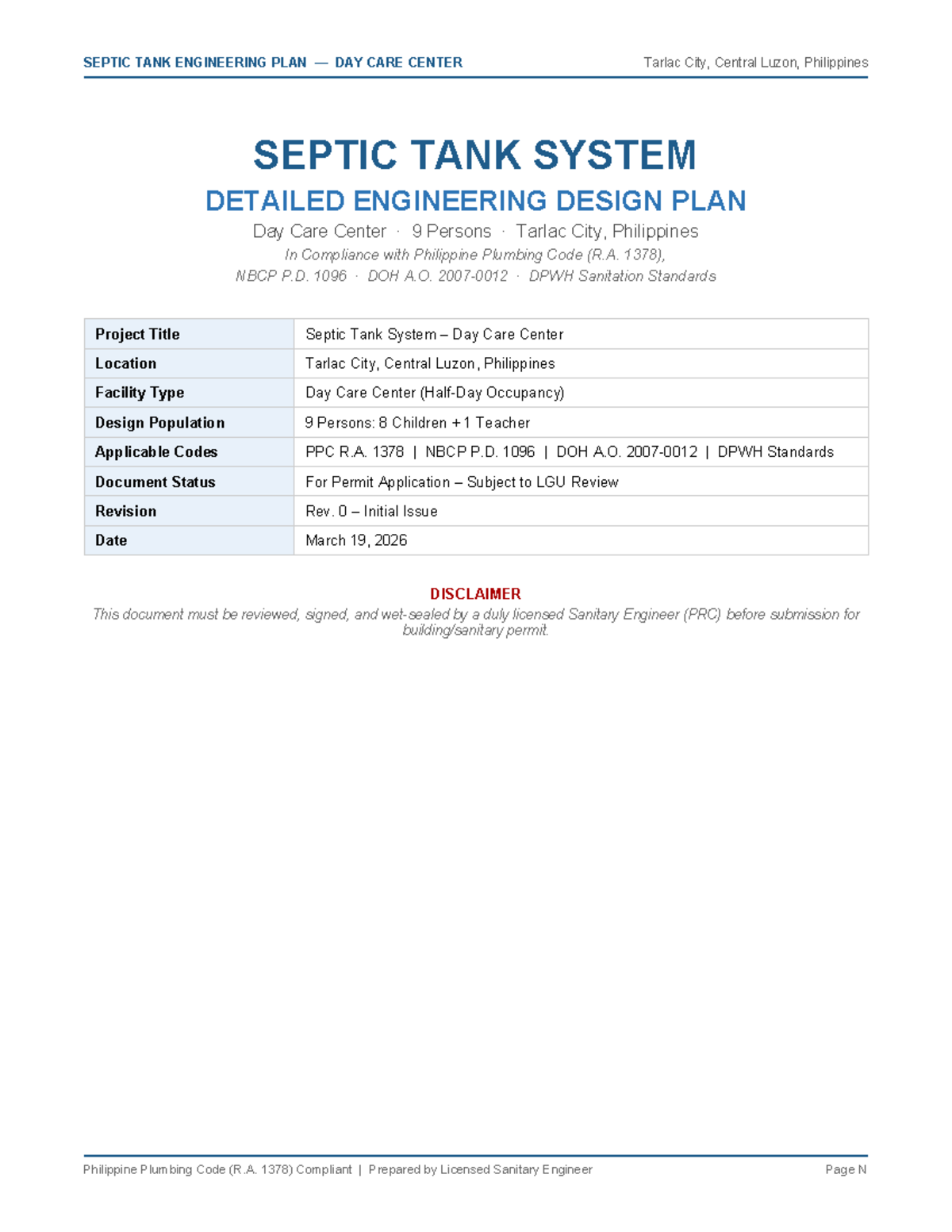 Septic Tank Engineering Design Plan for Day Care Center (R.A. 1378 ...