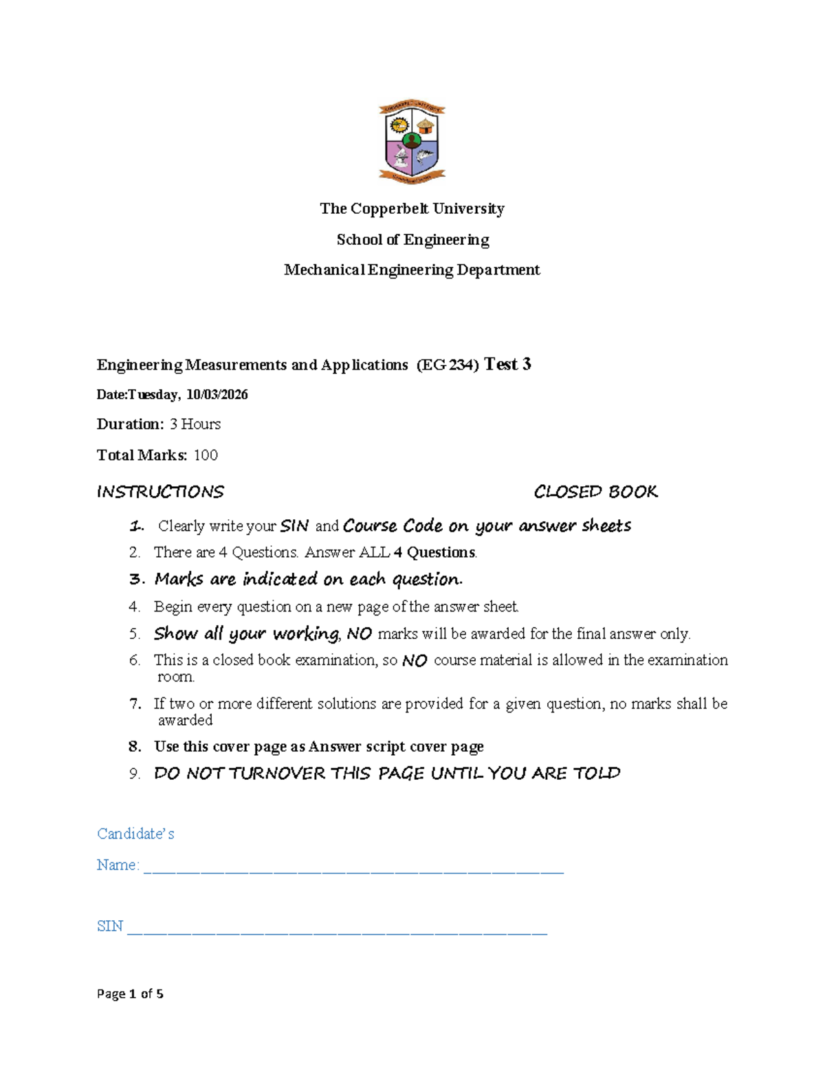 EG 234 Engineering Measurements & Applications Test 3 - 2026 - Studocu