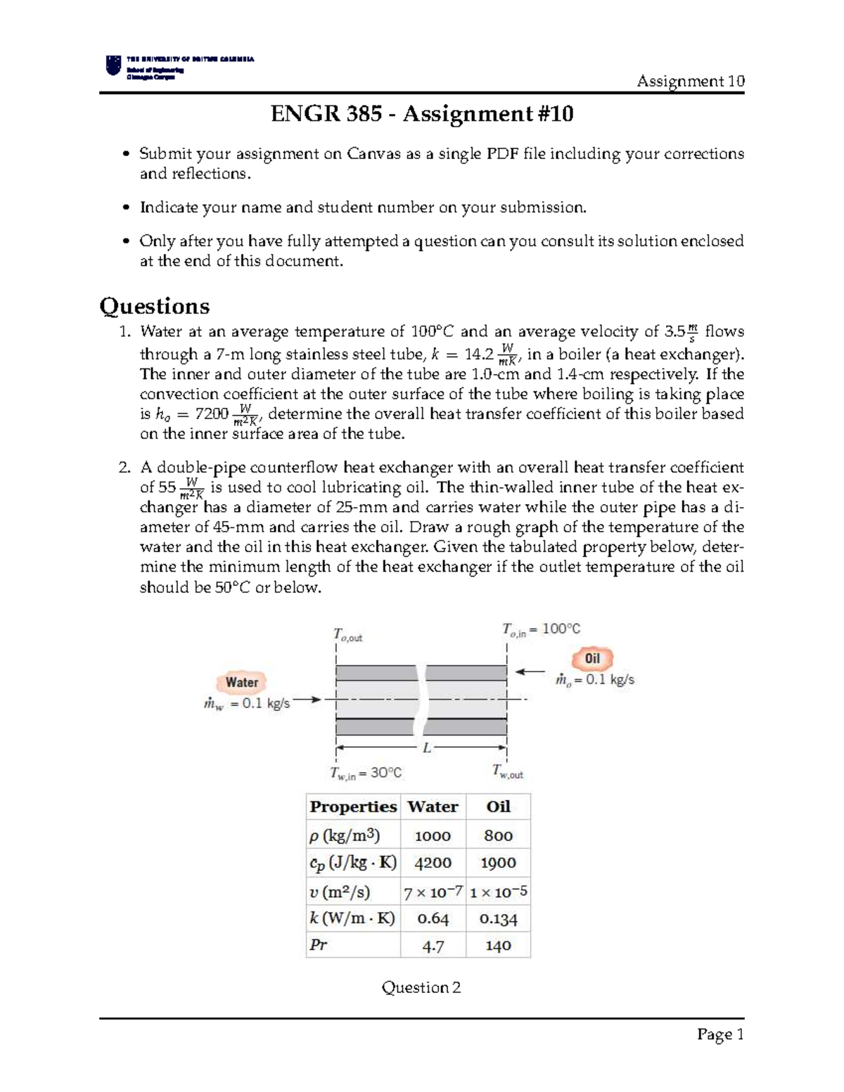ENGR 385 Assignment 10: Heat Exchanger Analysis and Calculations - Studocu