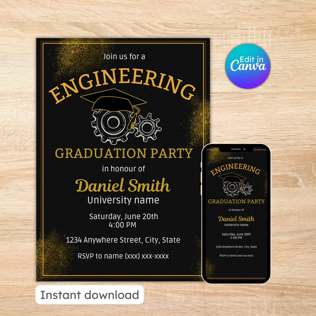 Engineer Graduation Party Invitation Template, Engineering Graduate ...