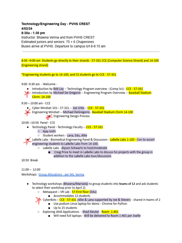 PVHS CREST Tech/Engineering Day Schedule | PDF | Engineering