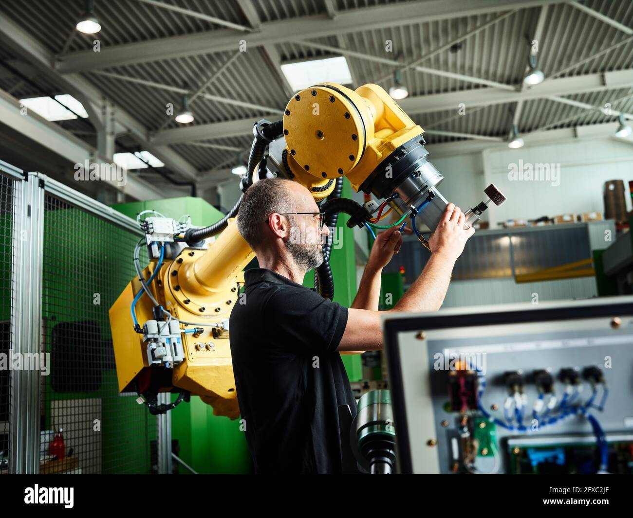 Engineer working in industry with robotic machine Stock Photo - Alamy