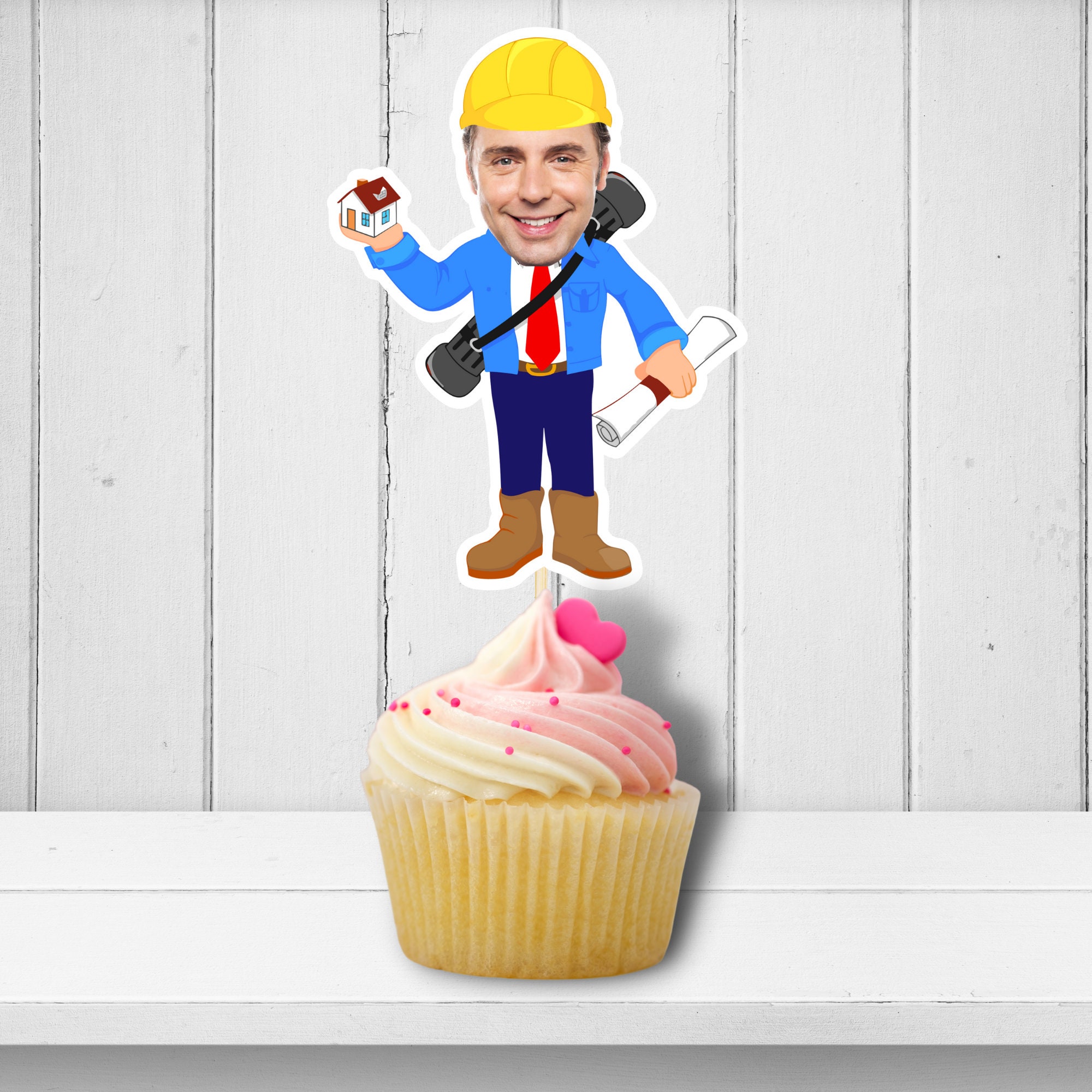 Cartoon Engineer Cupcake Toppers - Custom Birthday Party Cupcake ...
