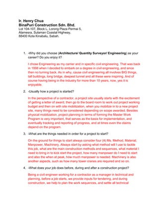 Final project brief and interview ici | DOCX | Civil Engineering ...