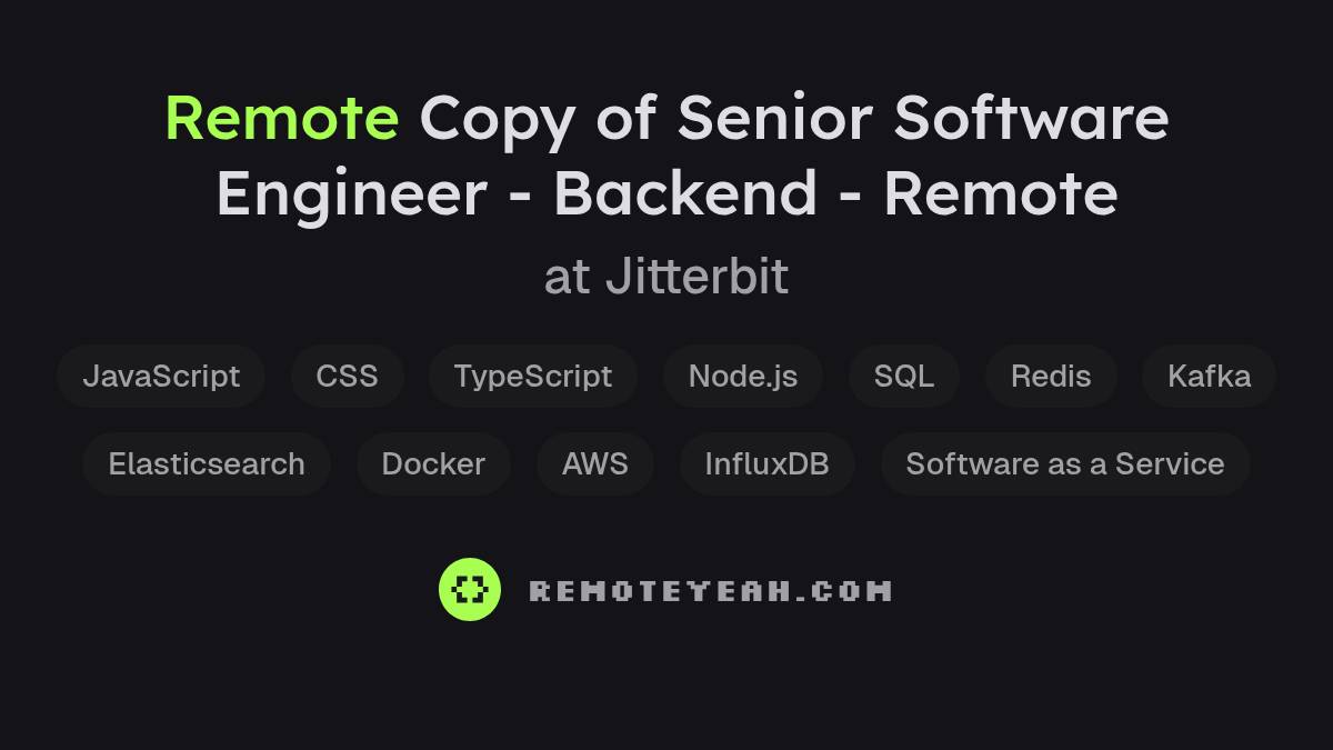 Remote Copy of Senior Software Engineer - Backend - Remote at Jitterbit