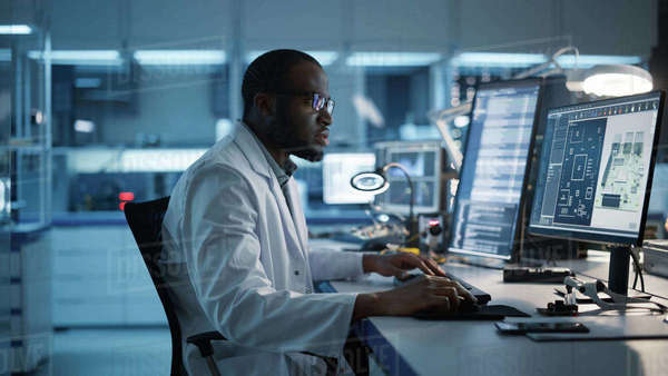 Engineer using computer in electronic laboratory Stock Photo - Alamy