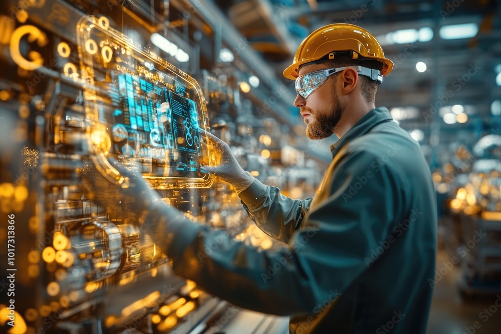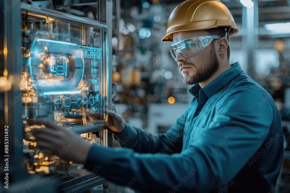 Very realistic and photographic photo of an engineer focused on a ...