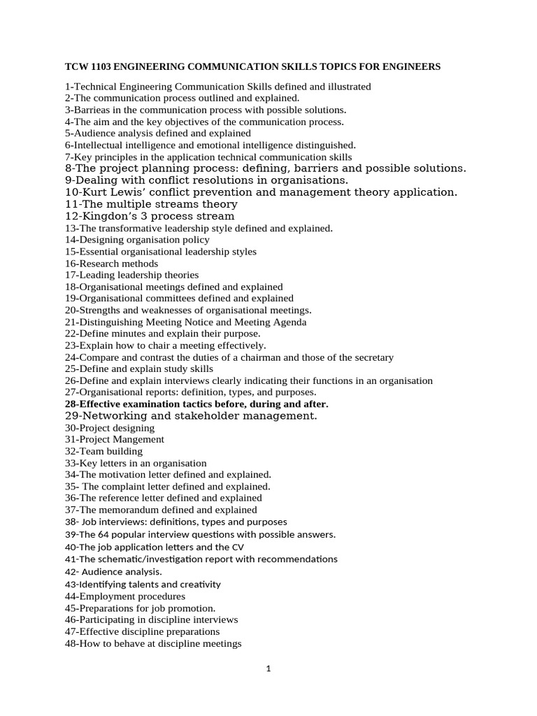 1103 Engineering Communication Skills Topics For Engineers | PDF ...