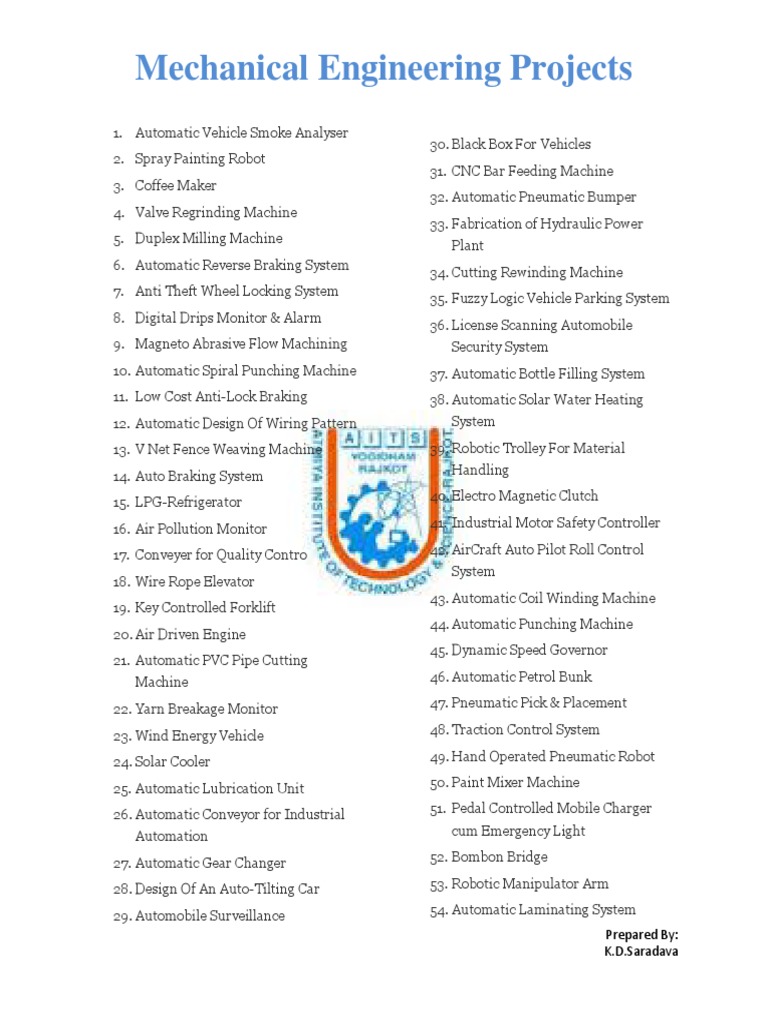 Design Engineering Subject Topics (Mechanical Engg. Project Topics) - 1 ...