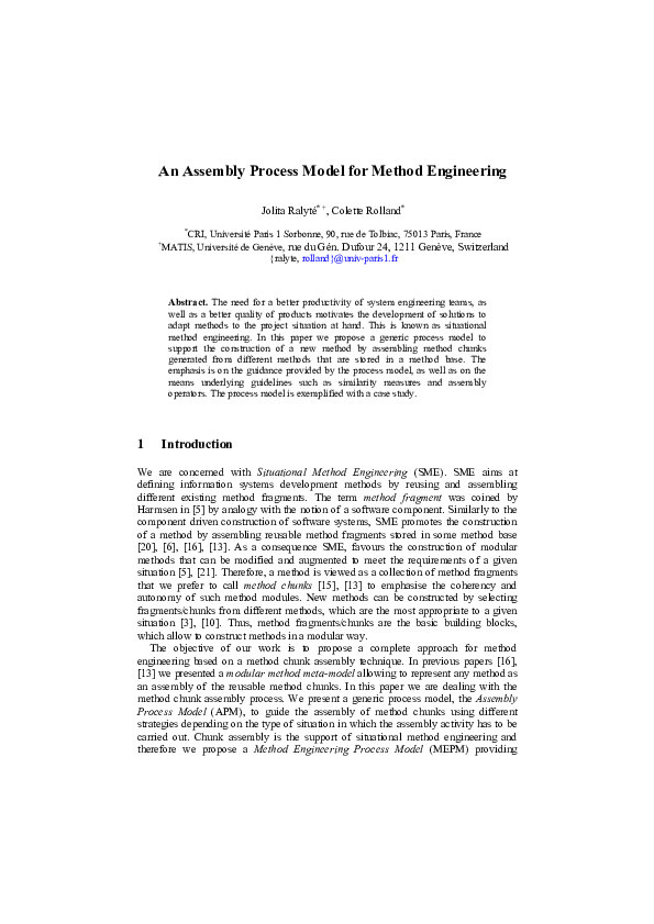 (PDF) An assembly process model for method engineering