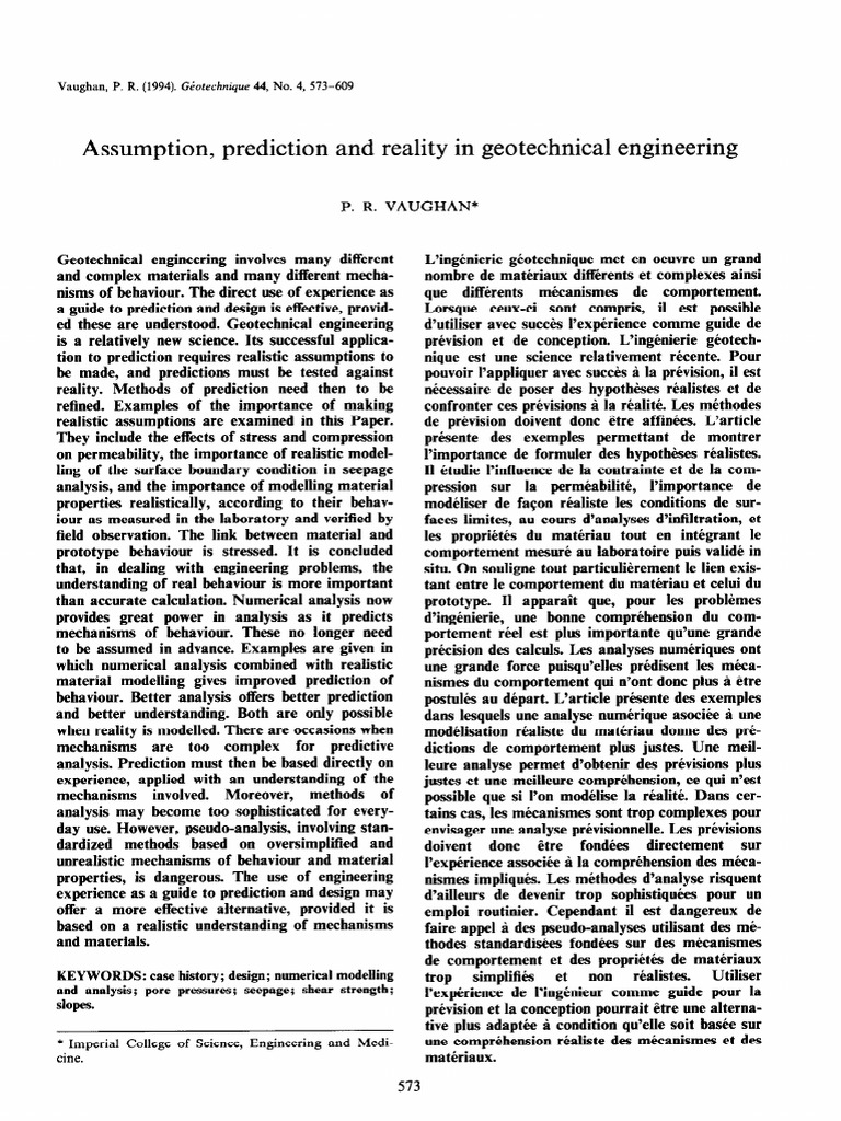 Assumption, Prediction and Reality in Geotechnical Engineering (Vaughan ...