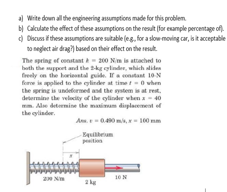 a) Write down all the engineering assumptions made | Chegg.com