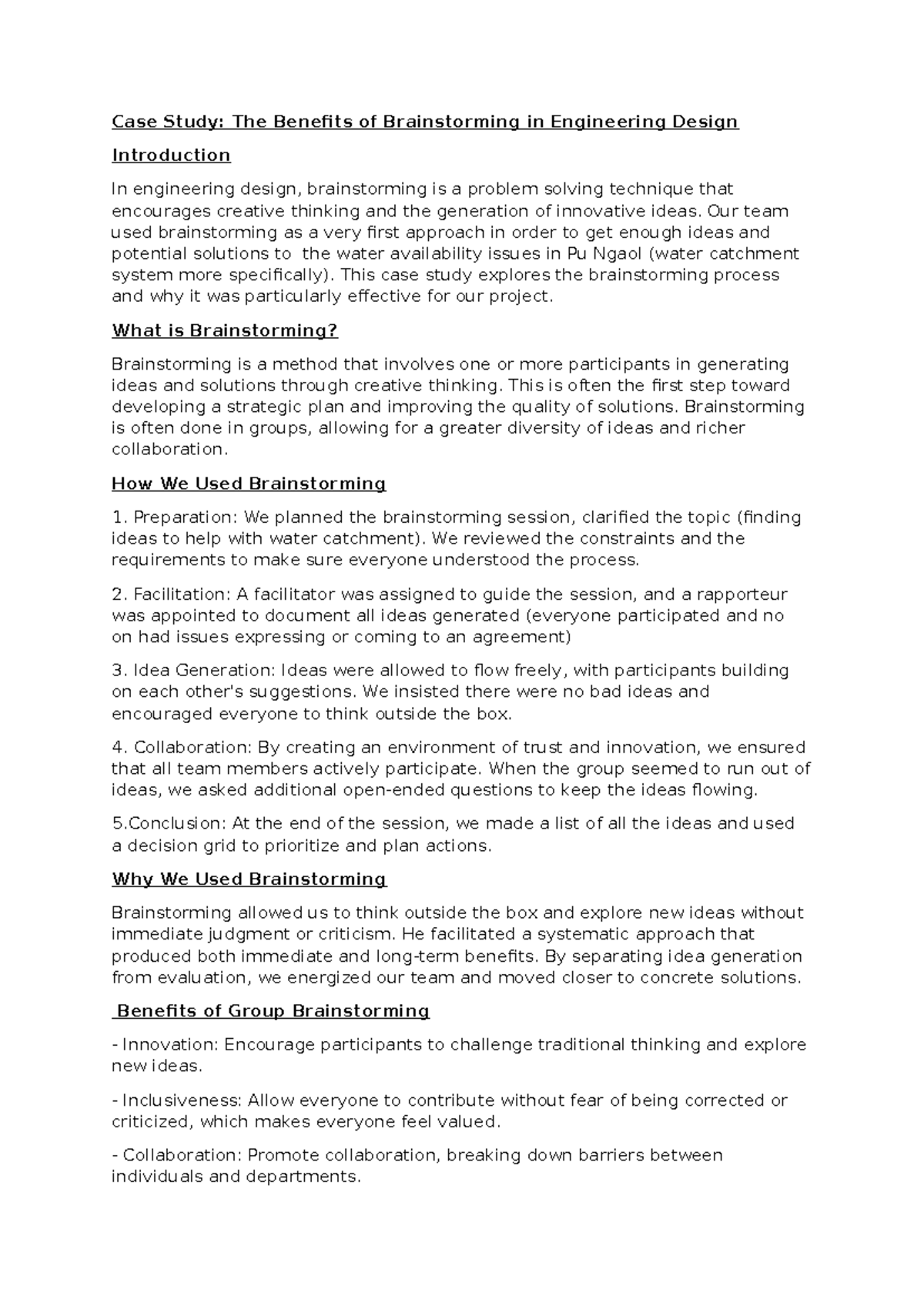 Case study for brainstorming - Case Study: The Benefits of ...