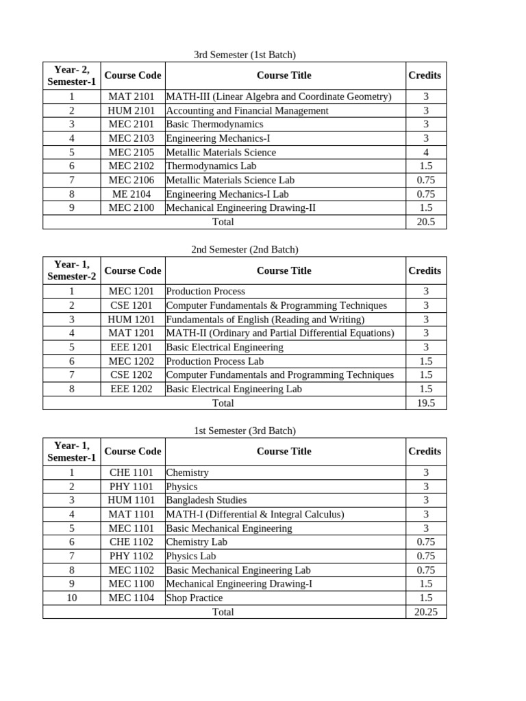 Course Code & Name of Mechanical Engineering | PDF | Mechanical ...